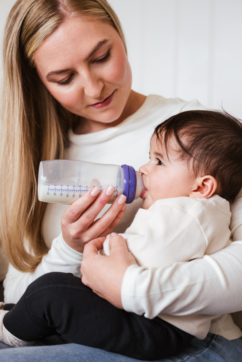 Butelka do karmienia bez BPA i BPS, wykonana z polipropylenu i silikonu.